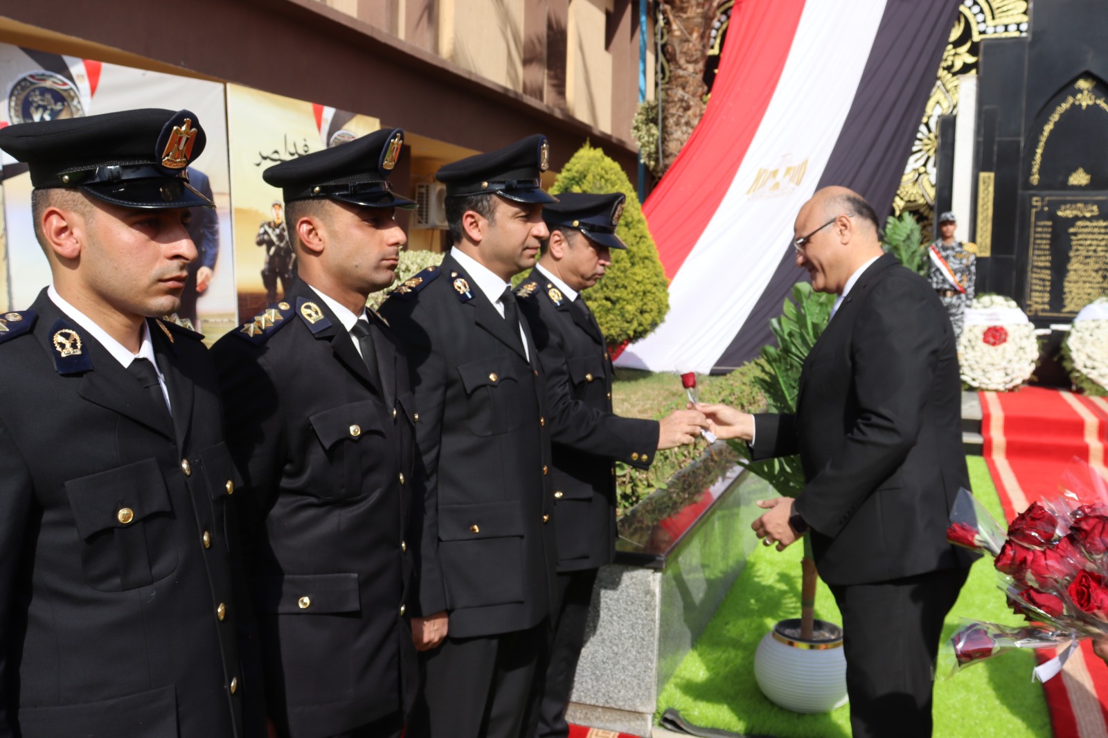 وعلى أنغام الموسيقى العسكرية التي عزفت “سلام الشهيد”، قام المحافظ ومدير الأمن بوضع إكليل الزهور، وقراءة الفاتحة ترحماً على أرواح أبطال الشرطة الذين سطروا بدمائهم الزكية ملاحم وطنية خالدة في سبيل الحفاظ على أمن وإستقرار الوطن.