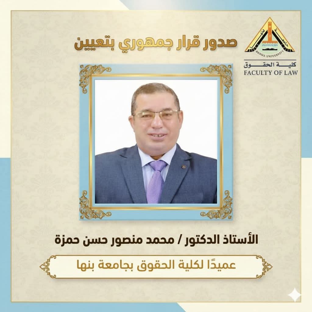 تولى الدكتور محمد منصور حسن حمزة اليوم مهام عمادة كلية الحقوق بعد صدور القرار الجمهوري بتعيينه رسميًا، ليباشر الإشراف على جميع القطاعات الأكاديمية والإدارية في الكلية.