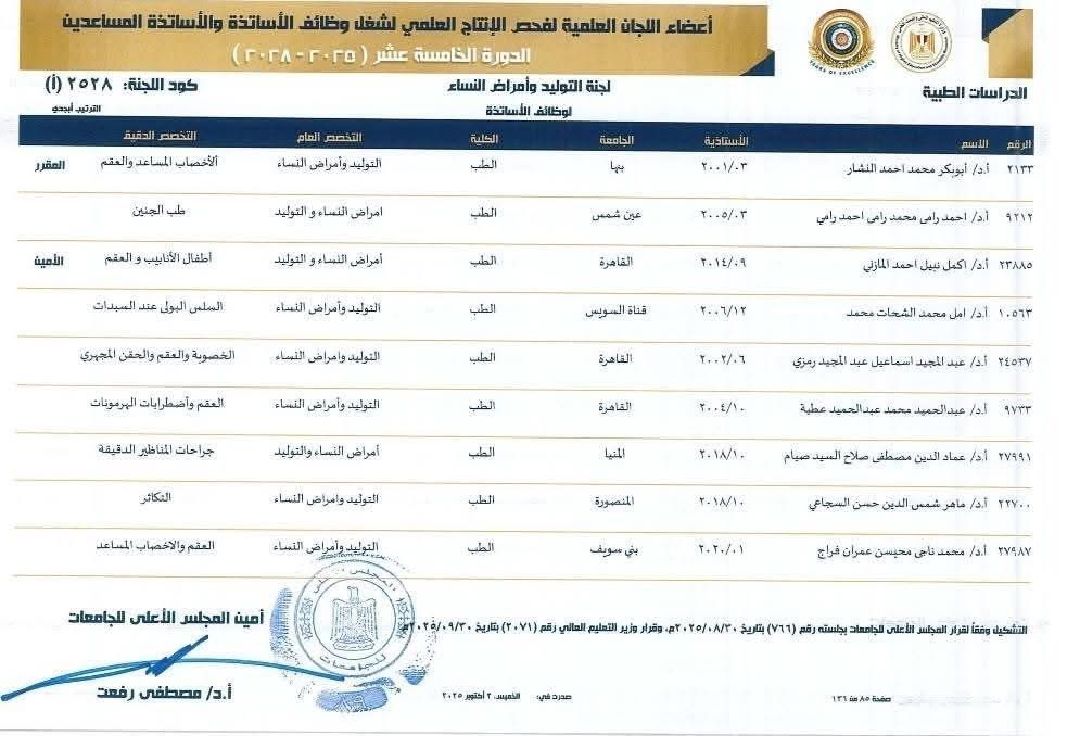 في شهر البطولات والانتصارات، شهر أكتوبر الذي تتجدد فيه معاني العزة والفخر، تكتب جامعة بنها صفحة جديدة من صفحات المجد، ليس في ميادين القتال هذه المرة، بل في ميادين العلم والمعرفة، حيث تتوّج الدكتورة **نرمين عدلي** بوسام جديد من التميز بانضمامها **عضوًا بلجنة ترقية الأساتذة والأساتذة المساعدين بالمجلس الأعلى للجامعات**، اللجنة المعنية بفحص وتقييم الإنتاج العلمي لأعضاء هيئة التدريس على مستوى الجمهورية.